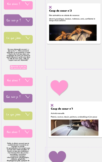 L'objectif premier était de traduire des concepts abstraits — comme des passions ou des ambitions futures — en une interface fluide et ergonomique. Pour y parvenir, j'ai mobilisé quatre compétences clés : Comprendre les attentes d'un visiteur sur un portfolio, Concevoir une arborescence logique, Exprimer mon univers à travers une charte graphique unique et Entreprendre la réalisation technique de A à Z. Techniquement, le but était de maîtriser Figma en profondeur, notamment via l'utilisation de l'Auto-layout pour une structure parfaite et des composants interactifs complexes pour donner vie à la navigation